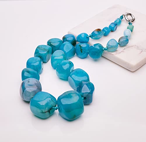 TreasureBay - Splendida collana da donna con pietre di agata e nessuno, colore: Blu, cod. TBGEM01