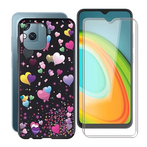 TREBAM Custodia Per Blackview Oscal C80 (6.5 pollice) + 2 Pcs Pellicola Protettiva Vetro Temperato, Antiurto TPU Ultra Sottile Morbida Silicone Nero Case Cover Per Blackview Oscal C80 - YQ29