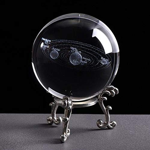 Tree2018 - Sfera di cristallo, 6 cm, con sistema solare inciso, con decorazione di base, sfera trasparente