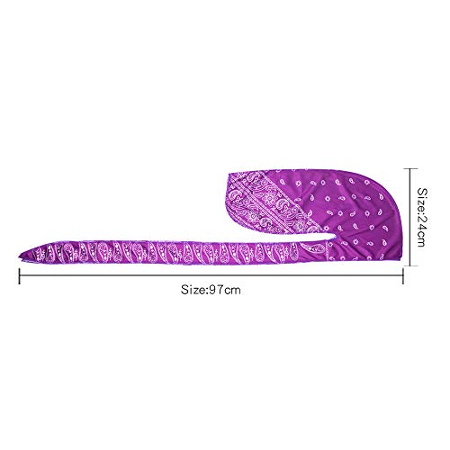 Treer Cappello Turbante Seta Durag per Uomo Donna Stampa Paisley Regolabile Turbante Cappello Cappellino da Pirata con Coda Lunga Morbida Moda Hip-Hop Berretto (Nero,100cm)