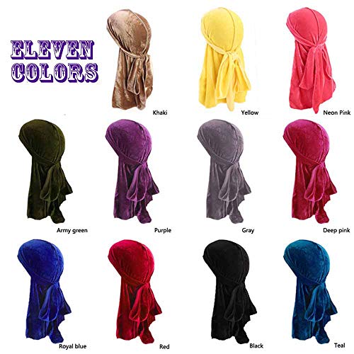 Treer Durag Bandana Cappello Accessori Turbante Donna Copricapo, Velluto Tinta Unita Elegante Coda Lunga Fascia Pirata Flessibile Baotou Morbida Musulmano Hijab (alzavola,Taglia unica)