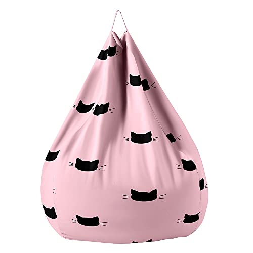 Treer Fodera per Pouf a Sacco, Senza Imbottitura, Poltrona a Sacco per Interni ed Esterni, con Simpatico Motivo a Gattino, Fodera per Pouf a Pera per Adulti e Bambini (90x110cm,Rosa)