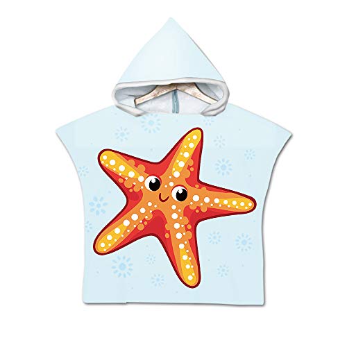 Treer Poncho Accappatoio per Bambini con Cappuccio, 3D Microfibra Cartone Animato Poncho Asciugamano in Asciugatura Rapida Telo da Bagno per Bagno Spiaggia Nuoto (60X60cm,Stella Marina)