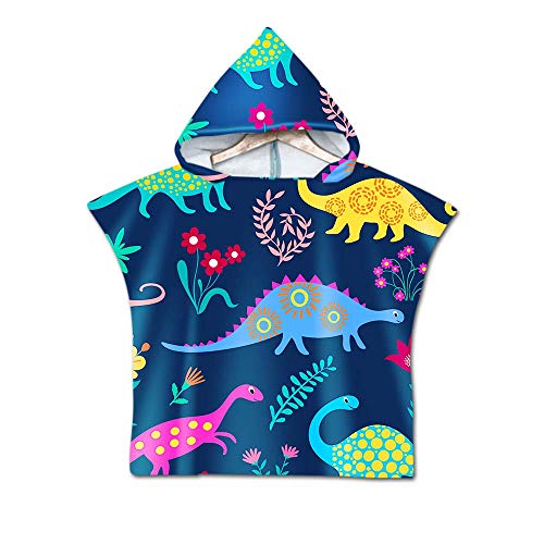 Treer Poncho Dinosauro Accappatoio con Cappuccio per Bambini, Asciugamano da Spiaggia Asciugatura Rapida Assorbente Telo da Bagno per Ragazze Ragazzi Nuoto Doccia 2-7 Anni (60X60cm,Blu Navy Foglie)