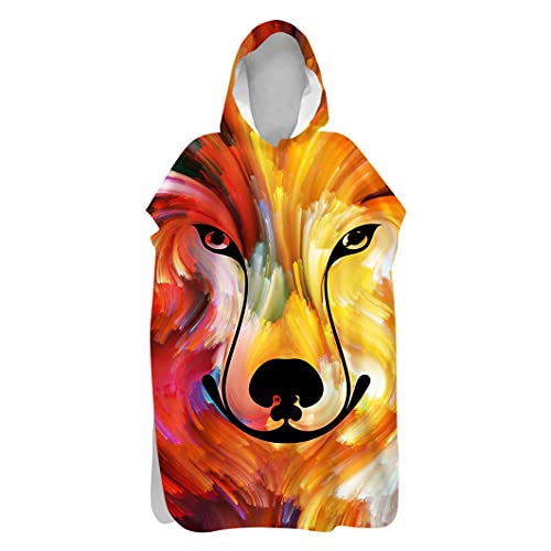 Treer Poncho Surf con Cappuccio, Microfibra Asciugatura Rapida Poncho Cambiare Spogliatoio Accappatoio per Adulto Uomini Donne Bambino Ideale per Il Nuoto, Le Immersioni (80x145cm,Lupo moda)