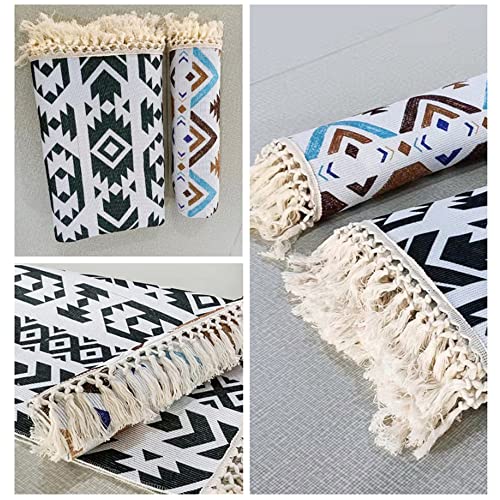Treer Quadrato Tappeto in Cotone Tessuto a Mano con Nappe, Boho Tappeti Moquette Cotone Lavabile Tappetino per Cameretta Bagno Cucina, Home Decorazione Tappeti (Stelle Blu,90 * 180CM)