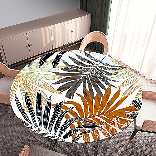 Treer Rotonda Tovaglia in Poliestere con Bordo Elastico, 3D Piante Tropicali Stampa Copritavolo Impermeabile Antipolvere Tovaglia per Cucina Festa Giardino Decorazione Tavola (Foglie d'autunno,180cm)