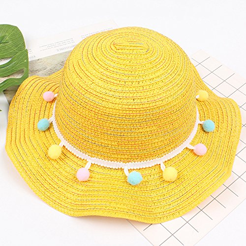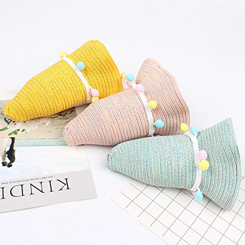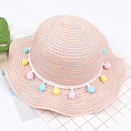 Treestar Summer Waves Sun Hat mixed-colored peluche palla decorazione donna bombetta Dome Outdoor spiaggia protezione solare cappello di paglia 52 - 54 cm 1PCS (bianco)