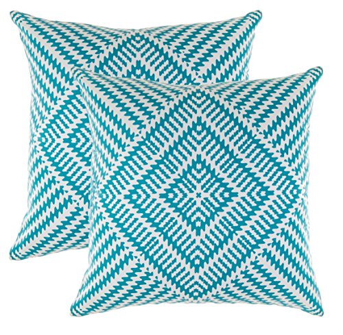 TreeWool - Confezione da 2 - Federe Copricuscino Decorative con Motivo Caleidoscopico in Cotone (40 x 40 cm, Turchese)