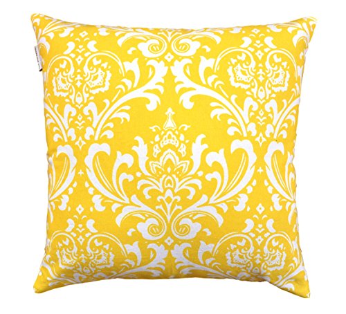 TreeWool federe copricuscino decorative (45 x 45 cm, Giallo) con motivo Damask in cotone - Confezione da 2