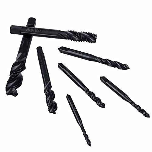 Treki 7pcs HSS Maschi Filettatura Vite Nitruro Maschi Filettatura Macchina Acciaio Veloce M3 M4 M5 M6 M8 M10 M12 Strumento di Filettatura Maschio a Spirale Macchina Metrica