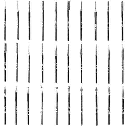 30 punte diamantate adatte per lavori di dettaglio fine, taglio, incisione, intaglio, ritocco e finitura, lavoro su vetro, metallo, pietra, ceramica, legno, plastica.