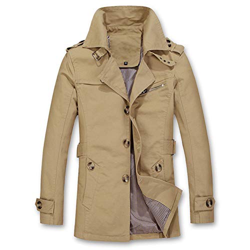 Trench Coat da Uomo Cappotto a Bottoni Slim Fit Giacca Leggera Casual Soprabito Cachi S