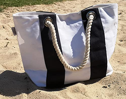 MC Trend XL beach bag shopper con tasca interna grande borsa da spiaggia borsa a tracolla per la vacanza 54 x 37 x 17 (Blu/Bianco)