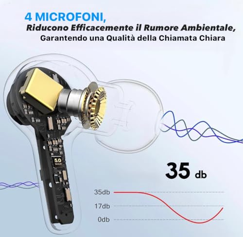 My Trend Cuffie Bluetooth, Auricolari Bluetooth 5.1 con Stereo HiFi Immersivo, Cuffie Wireless Mini Incorporato 4 HD Mic, Cuffiette Bluetooth IP7 Impermeabili Auricolari, Cuffie Wireless In Ear