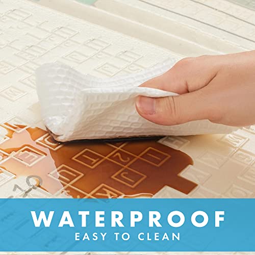 Il tappetino per gattonare è impermeabile e facile da pulire: il tappetino per gattonare è impermeabile è realizzato in XPE e può essere facilmente pulito con un panno umido. La finitura impermeabile consente di mantenere pulito il parco giochi e la palestra.