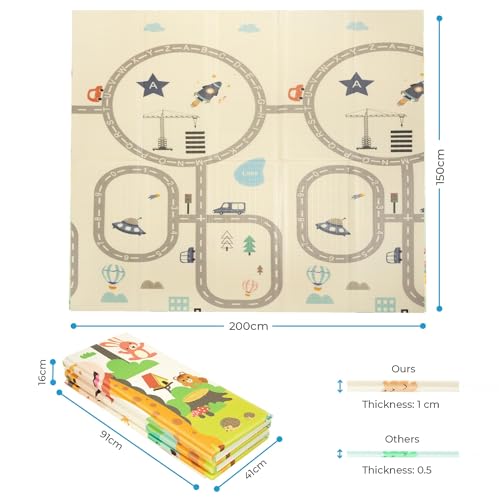 Pavimento in gomma EVA reversibile e pieghevole: disegni su entrambi i lati e disegni originali pensati per intrattenere il tuo bambino. Si allunga sul pavimento e si piega in 5 passaggi in modo facile per riporre in modo compatto in poco spazio. Con borsa per il trasporto e la conservazione.