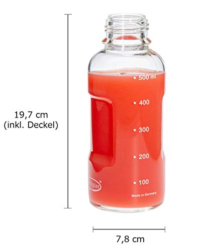 Trendglas Jena Borraccia in vetro borosilicato con scala - chiusura bianca, 500 ml