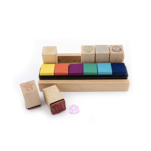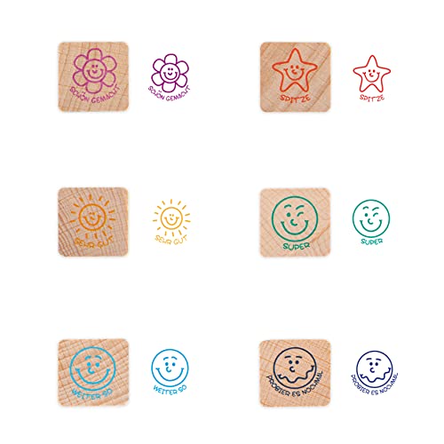Trendhaus- Lehrer Stempel Set ⎜6 Belohnungsstempel mit bunten Stempelkissen ⎜Holzstempel für Kinder und Schule, Multicolore, 928009