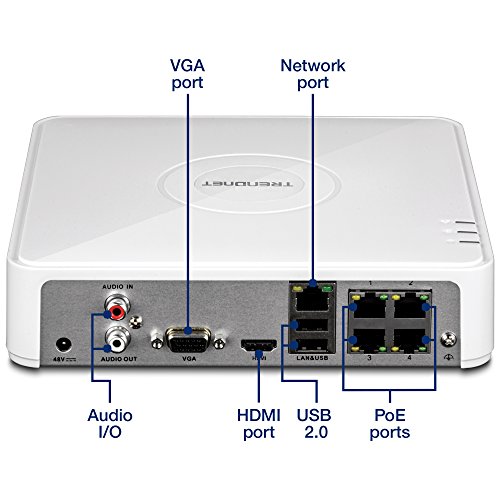 Trendnet NVR PoE 1080p HD Videoregistratore di Rete, 4 Canali, 4 Porte PoE, Argento
