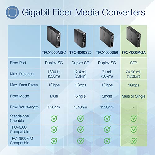 TRENDnet TFC-1000MGA, Convertitore di media 100/1000Base-T in SFP