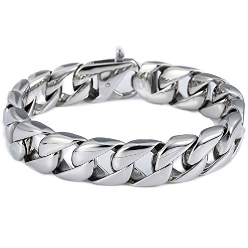 Trendsmax, bracciale da uomo/ragazzo in acciaio inox 316L, 15 mm, maglia arrotondata (barbazzale), color argento