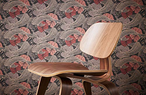 TRENDWALLS Carta da parati a forma di animale, nero, marrone, arancione, bronzo, stile asiatico, con pesci, carta da parati moderna per soggiorno, opaca, liscia