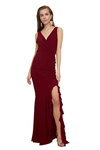 Trendyol Abito da Sera Dettagliato Notte Formale, Bordeaux, 46 Donna