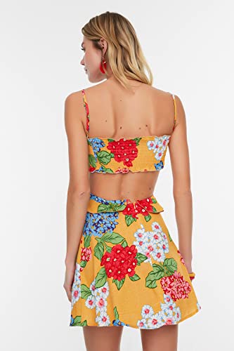 Trendyol Abito da Spiaggia Dettagliato in Viscosa con Motivo Floreale Dress, Giallo, 40 Donna
