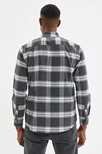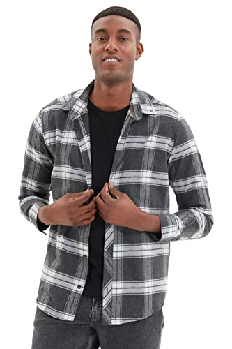Trendyol Anthracite-Camicia da Uomo Slim Fit Button Collar Maglia, Grigio