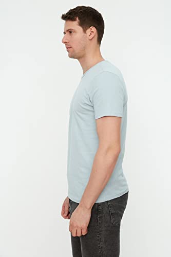 Trendyol Blue Basic-Bicicletta a Maniche Corte da Uomo, vestibilità Aderente, 100% Cotone T-Shirt, Blu, XXL