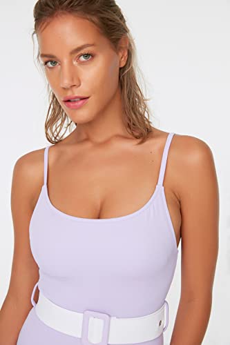 Trendyol Cintura Strutturata, Costume da Bagno Dettagliato Intero, Lilla, 40 Donna