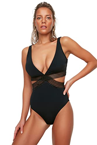 Trendyol Costume da Bagno in Tessuto Dettagliato a Righe Floreali, Nero, 0 Donna