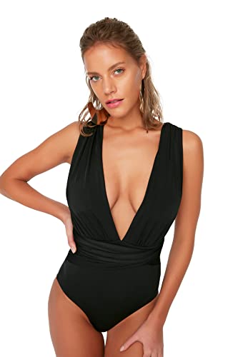 Trendyol Deep V Decollted Costume da Bagno Intero, Nero, 48 Donna