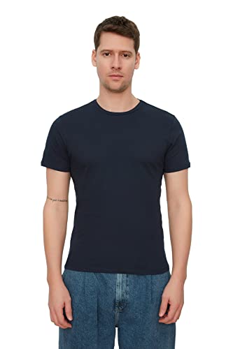 Trendyol Lacivert Basic-Maglietta da Uomo Slim Fit, 100% Cotone T-Shirt, Blu Navy