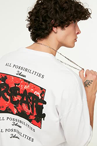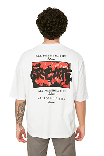 Trendyol Maglietta a Maniche Corte da Uomo con Stampa Oversize T-Shirt, Bianco, S