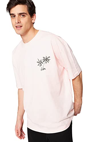 Trendyol Powder-Maglietta da Uomo a Maniche Corte, con Stampa Oversize T-Shirt, Rosa Cipria, XL