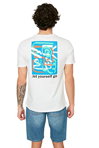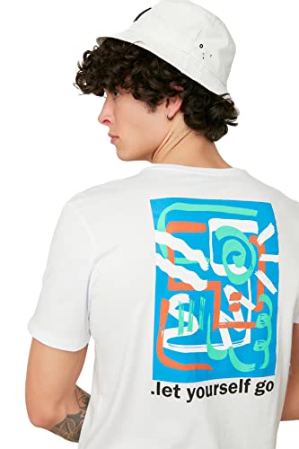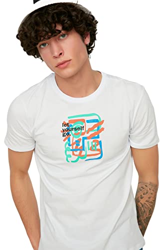 Trendyol T-Shirt Uomo Slim Standard Girocollo Camicia, Bianco, M