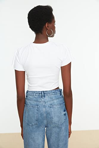Trendyol White Bio Crop-Camicia Lavorata a Maglia Blouse, Bianco, S Donna