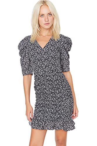 Trendyol Woman Midi Skater V-Ausschnitt Webstoff Kleid Vestito, Schwarz, 36 Donna