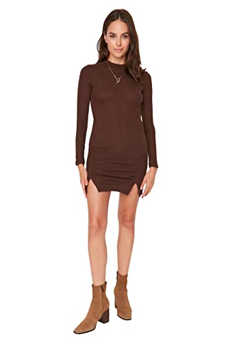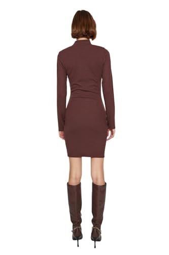 Trendyol Woman Mini Bodycon Standing Collar Knit Dress Vestito, Brown, XS Donna