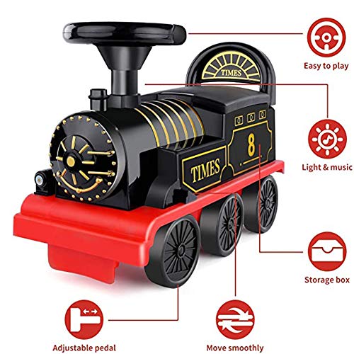 ♥ multifunzionale Uso: La nostra cavalcata alimentato il treno può funzionare all'interno che all'esterno, e funziona su e fuori pista bene. Ha scatola di immagazzinaggio sotto la sella che può immagazzinare giocattoli preferiti del bambino. Può essere usato come un giro sul giocattolo, un giocattolo piano, o si trasforma in un girello o di un vagone giocattolo pull. Questo treno con il pedale del disegno piedino regolabile volontà porta i vostri piccoli un'esperienza di guida confortevole.