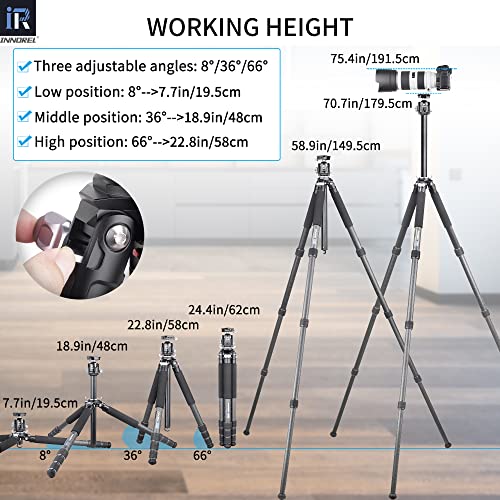 Treppiede in fibra di carbonio-INNOREL GT324C Treppiede compatto professionale per fotocamera DSLR con testa a sfera centrale a bassa gravità e colonna centrale a forma speciale Carico massimo 25 kg