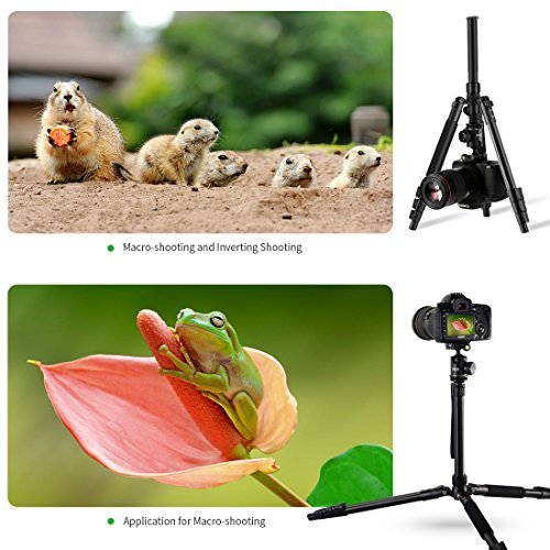 Treppiede Due in Uno: il treppiede per fotocamera può essere convertito in monopiede con 4 o 5 sezioni avvitando il tubo del treppiede all'asse centrale. Si può utilizzare sia come treppiede o monopiede per DSLR, videocamere, fotocamere digitali, dispositivi Gopro, ecc.