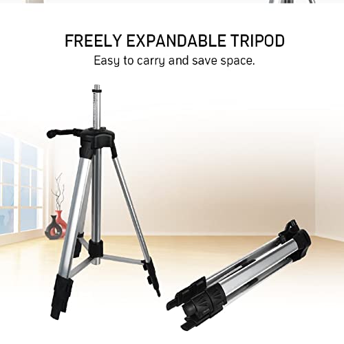 [Professional Treppiede per Laser con elevata sicurezza]: treppiede livella laser, staffa per treppiede in alluminio e treppiedi compatto per livella a laser con rigoroso controllo di qualità e garanzia di qualità, elevato fattore di sicurezza, treppiede autolivellante e palo telescopico con treppiede può essere utilizzato con tranquillità, il treppiede per livella laser con manovella è l'ideale per il lavoro che richiede una linea retta o una misurazione accurata