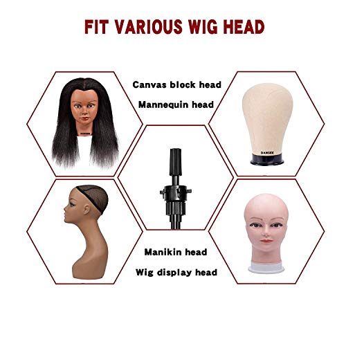 ❆Versatile: il supporto per la testa da 0,8 "di larghezza si adatta alla maggior parte della testa del manichino da parrucchiere, della parrucca in tela, ecc. Puoi sederti o reggere lo stile o fare una parrucca con il nostro treppiede regolabile per parrucca. Può essere utilizzato per visualizzare la testa del manichino a un'altezza completamente non estesa.