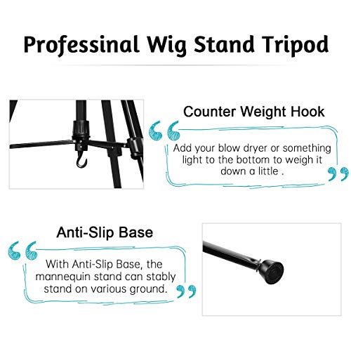 ❆Supporto per parrucca antiscivolo: con base antiscivolo, le gambe del treppiede a manichino possono stare stabilmente su vari terreni come pavimento, moquette, superficie di legno, ecc. Il treppiede tiene saldamente la testa del manichino, impedendole di scivolare.