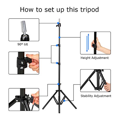 Altezza regolabile: l'altezza del treppiede è compresa tra22,05 pollici e 59,06 pollici, con testa in metallo ruotabile a 360 ° (φ0,78 pollici), non è necessario spostarsi quando si pratica il taglio dei capelli o lo styling dei capelli, basta ruotare a qualsiasi angolazione possibile.