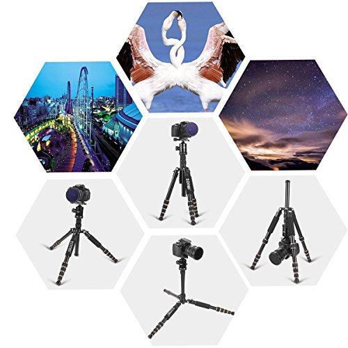 2 in 1 treppiede monopiede: questo treppiedi rimovibile può essere convertito in un monopiede regolabile avvitando insieme la gamba e colonna centrale tubo testa a sfera con 3/ vite di connessione.
