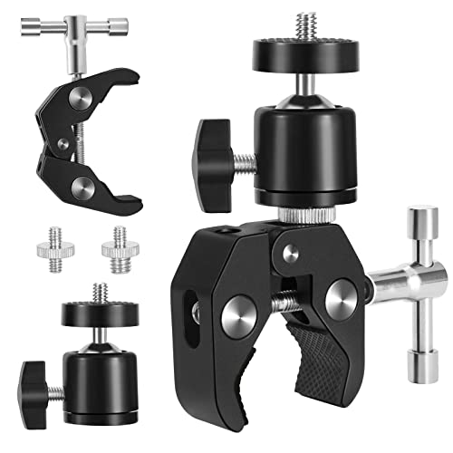 Super morsetto: Apertura massima: circa 55 mm/2,13", fori per viti standard da 1/4" e 3/8", carico massimo 2,5 kg, larghezza regolabile per un uso flessibile.